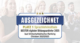 KERN Training wurde auch im Jahr 2025 von der WirtschaftsWoche als „Bester Digitaler Bildungsanbieter“ ausgezeichnet und belegte im Ranking der Kategorie Sprachlehrinstitute erneut den 1. Platz. Diese wiederholte Auszeichnung unterstreicht die führende Rolle von KERN Training bei der Entwicklung und Umsetzung innovativer, flexibler und praxisorientierter Weiterbildungslösungen für Unternehmen weltweit.